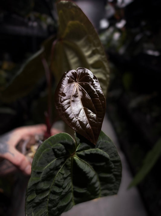 Anthurium 'Dark Magnificum' x 'Bloodmoon'