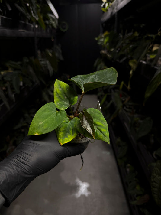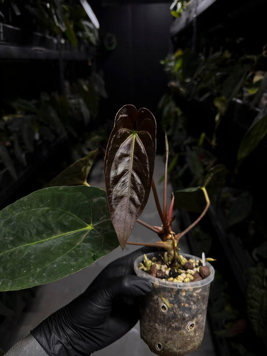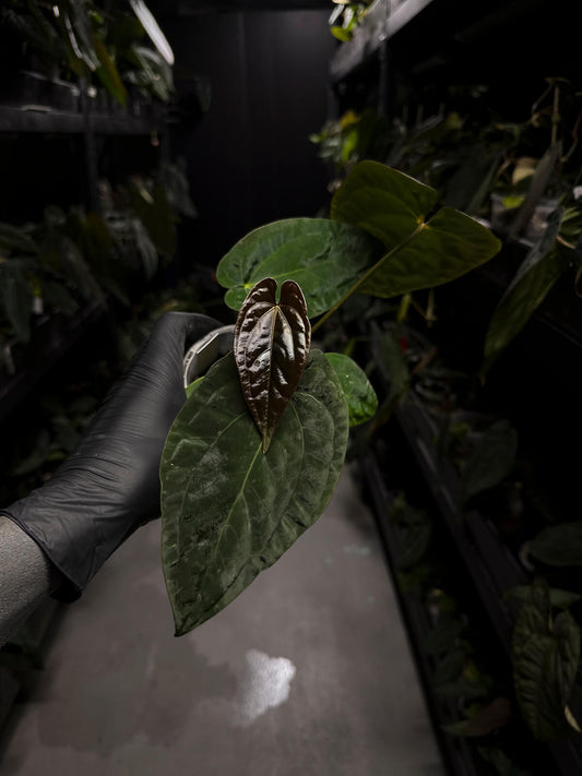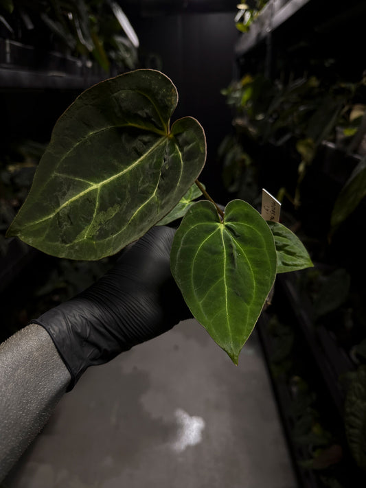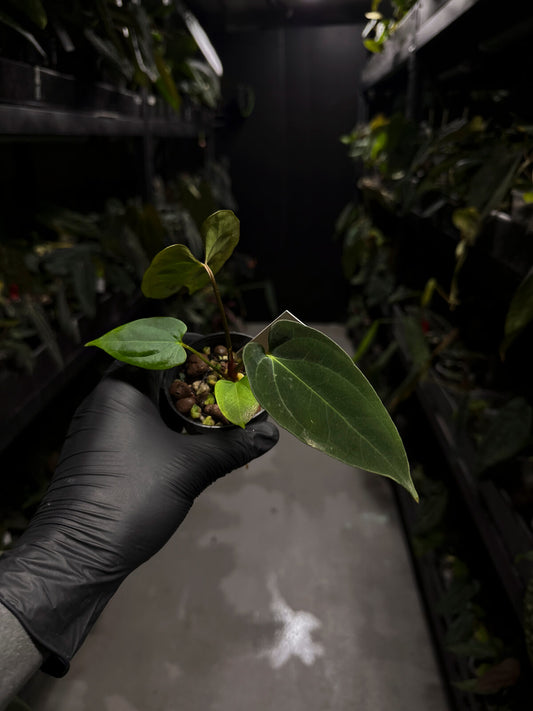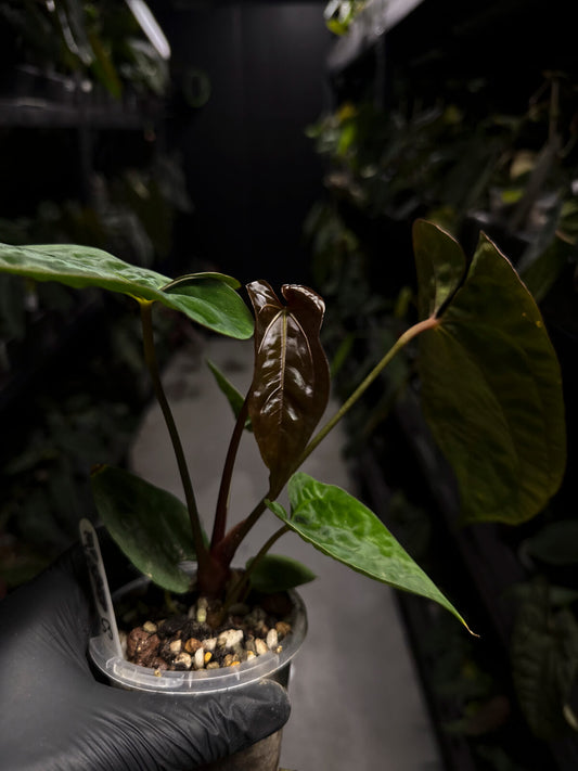 Anthurium papillilaminum x (antolakii / 'BVEP' x 'Dark Phoenix')