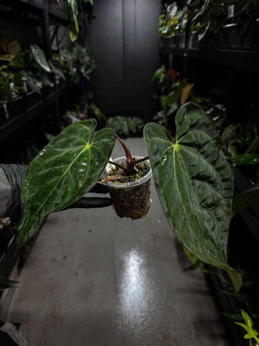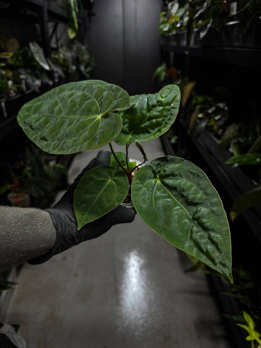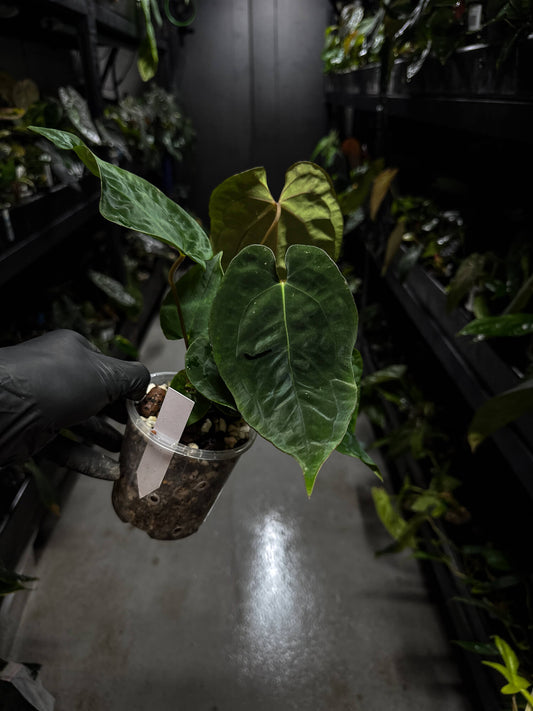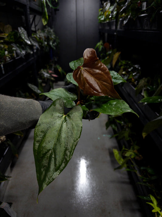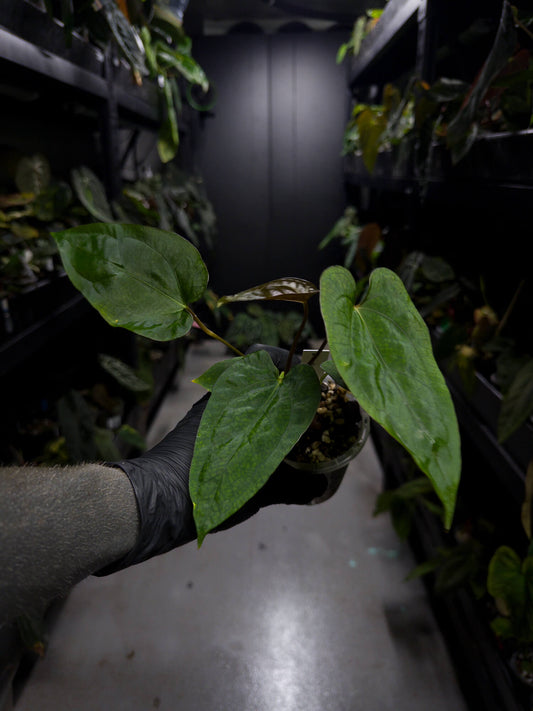 Anthurium papillilaminum x (antolakii / 'BVEP' x 'Dark Phoenix')