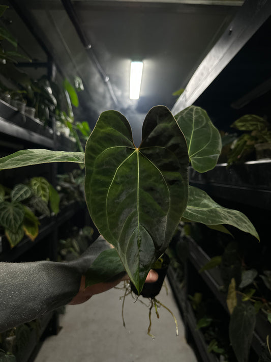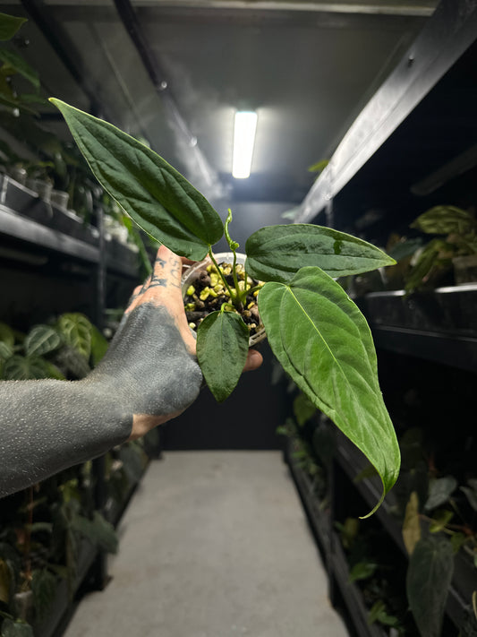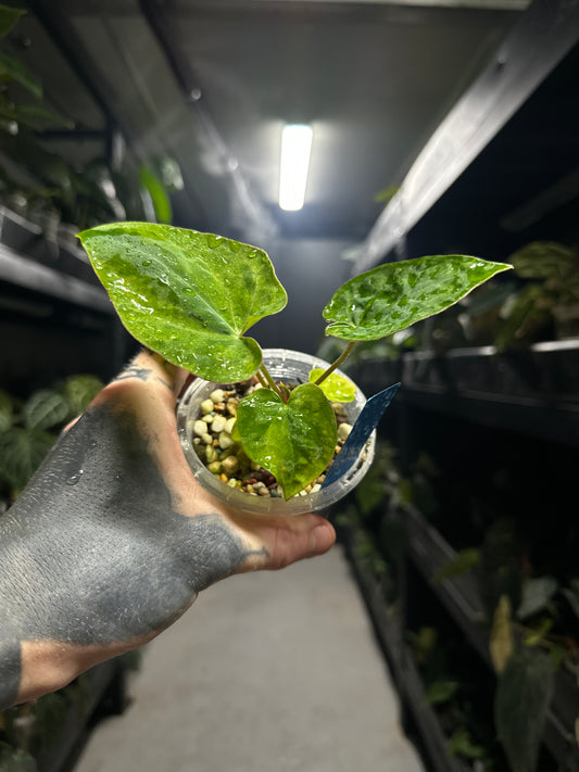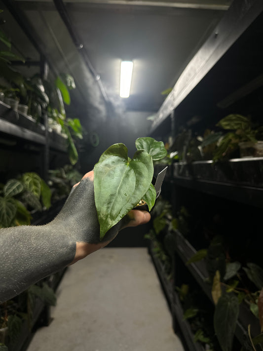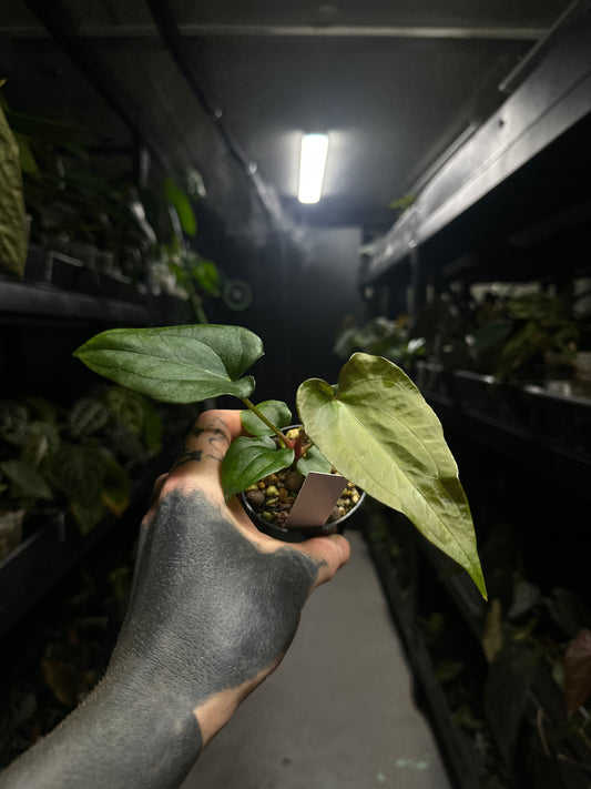 Anthurium papillilaminum x (pap x carlablackiae)