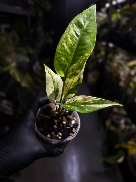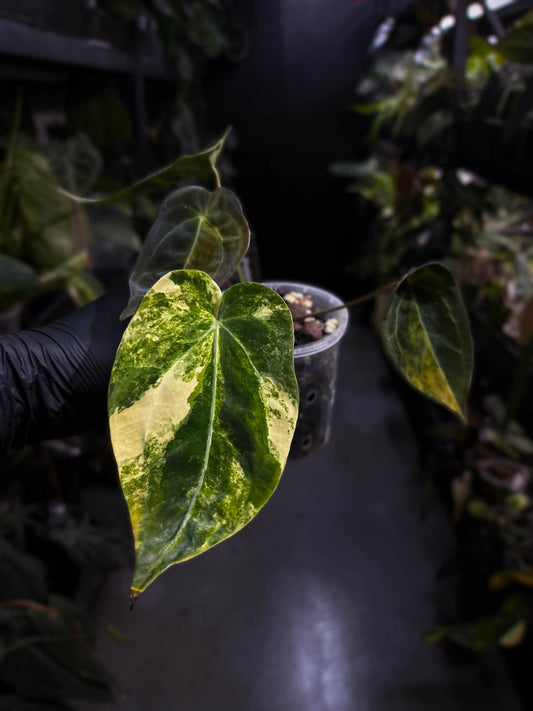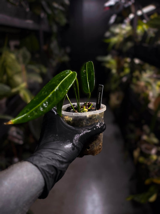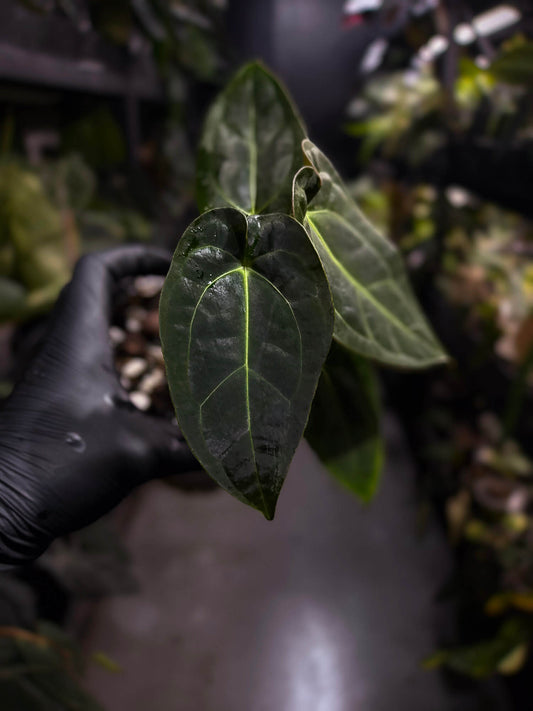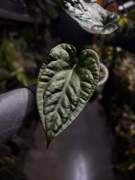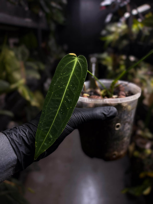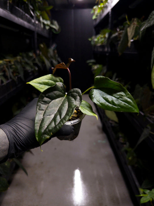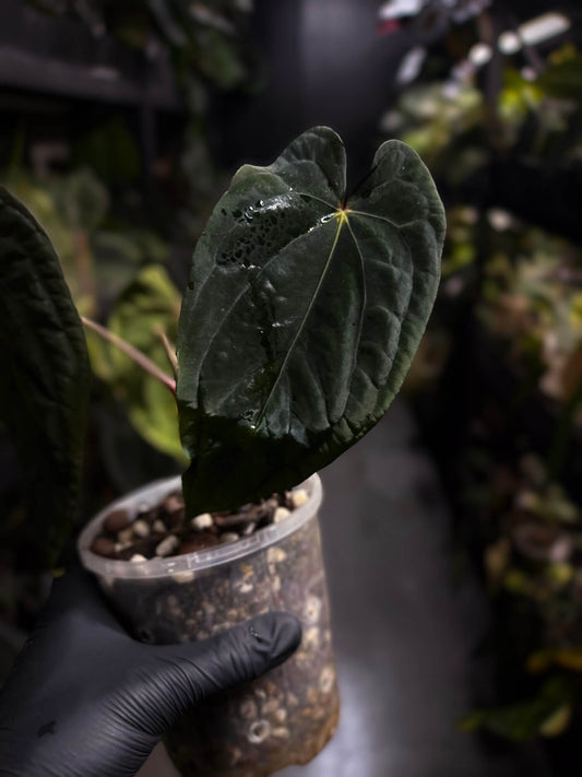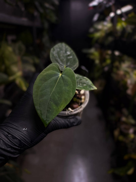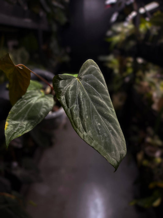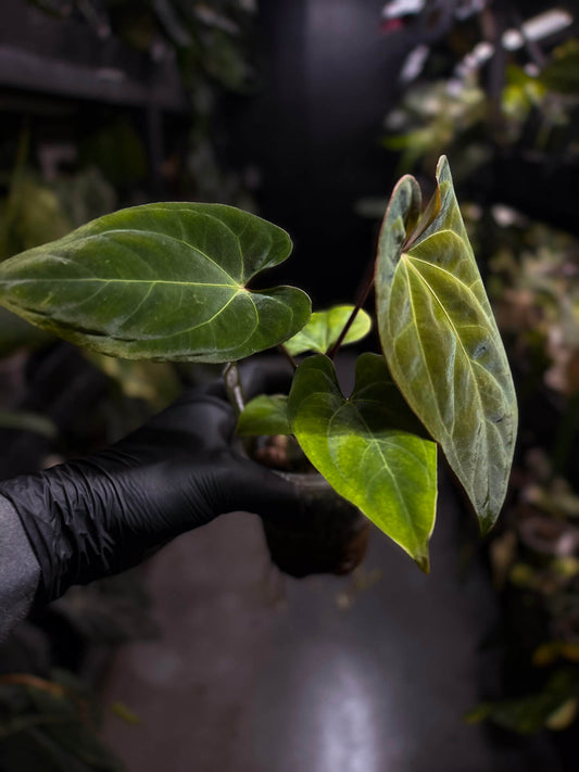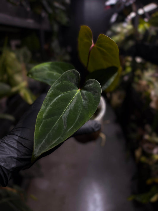 Anthurium besseae aff 'Elektra' x sp. 'Peru Velvet'