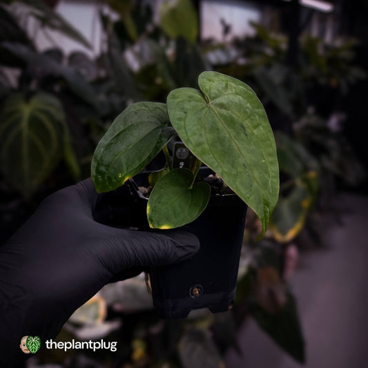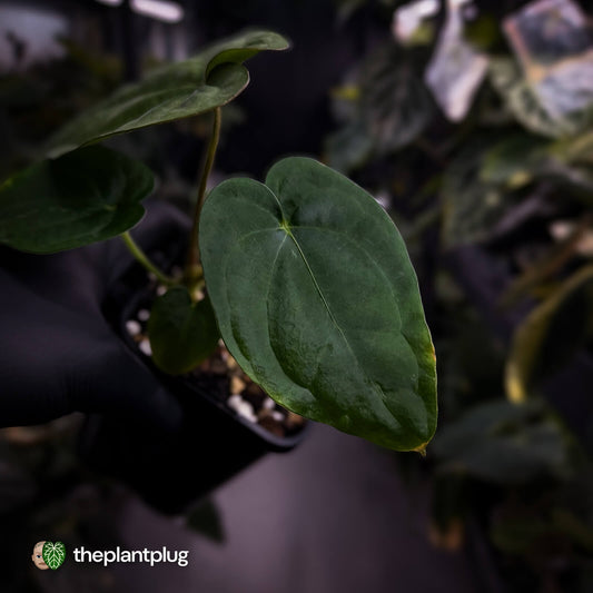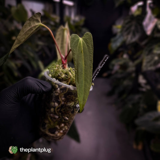 Anthurium carlablackiae x ('Black Widow' x 'Michelle)